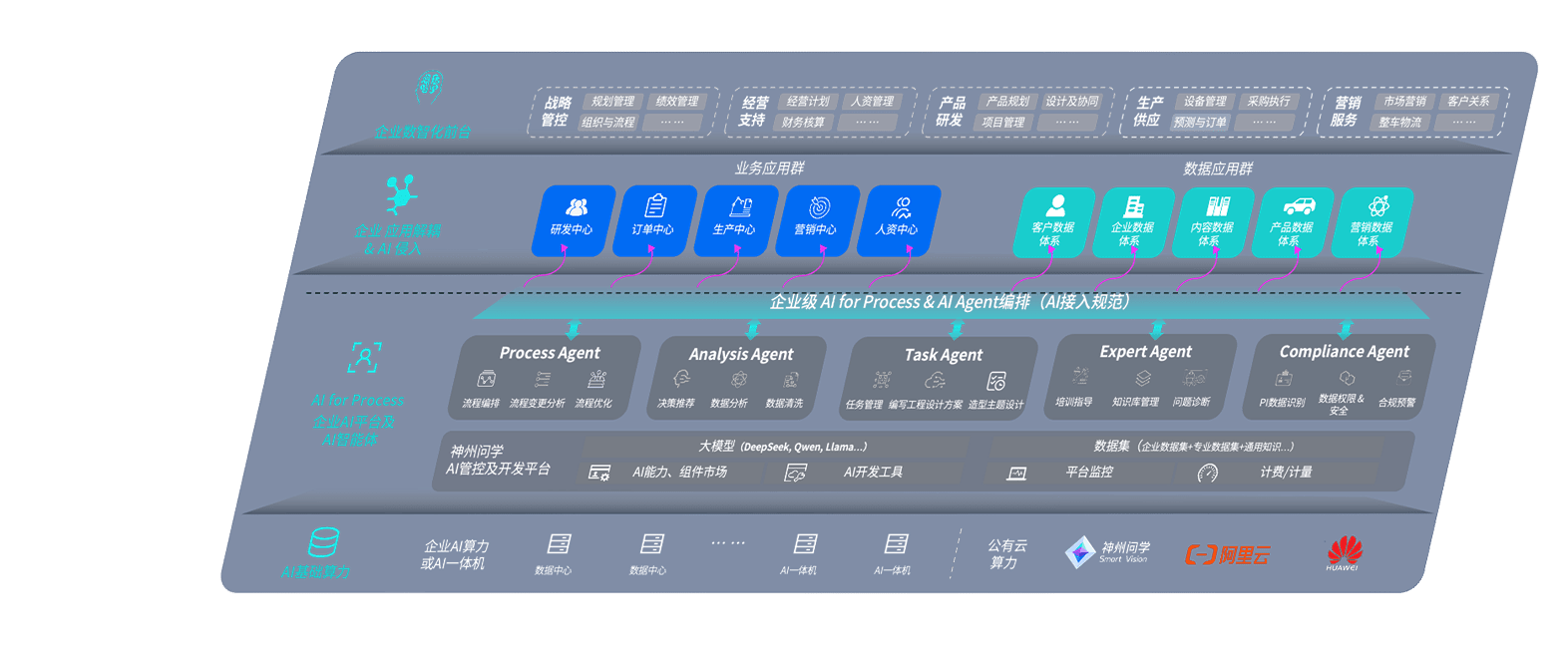 端到端的一站式AI工作空间深度融合了从企业战略规划到日常经营的全流程业务板块,,,定向解决车企内部领域多、、、、部门多、、、链条长、、场景碎片化等难题,,,支持车企快速构建以AI为核心的生产力写作体系,,,,实现任务执行与AI能力的无缝集成与交互